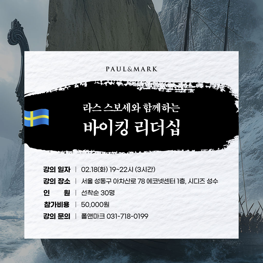 프로그램명 | 라스 스보세와 함께하는 바이킹 리더십 클래스 |
