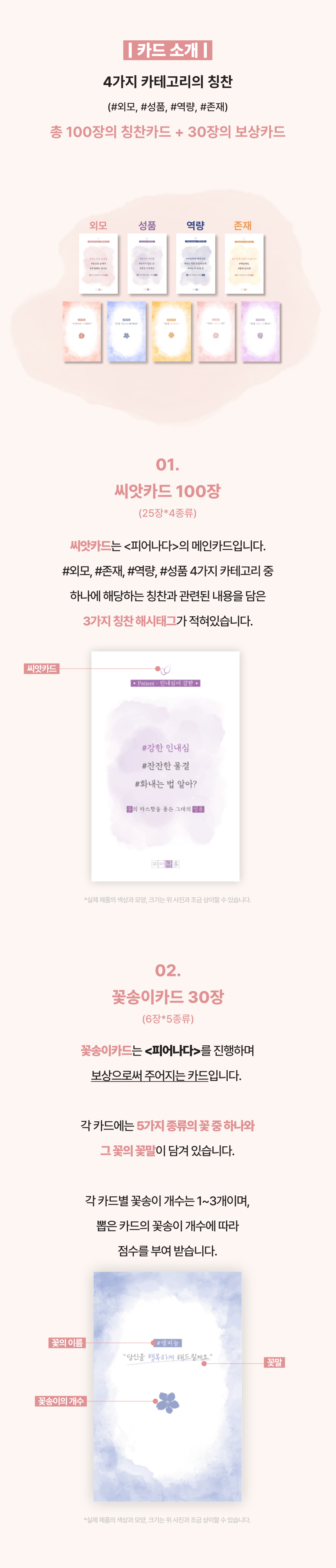 구성 : 씨앗카드 100장 + 꽃송이카드 30장 + 룰북 + 카드케이스